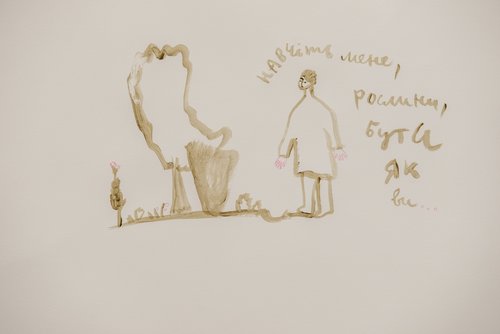 Alevtina Kakhidze was born in Eastern Ukraine. She's been living in Muzychi (near Kyiv) since 1995, except for two years that she spent at the Jan Van Eyck Academy in Maastricht (2004-2006). Kakhidze inherited her Georgian surname from her father and was raised within Russian culture, in its Soviet incarnation. Her self-declared multi-level cultural identity includes parts of Ukrainian, Georgian and West European mentalities. She has been an active and visible supporter of the Maidan Uprising in 2013-2014. The practice of Kakhidze is based on personal experiences and imagination, talking about consumer culture, gender, love, culture of protest, experience of war, everyday life, plants, and dogs. The information war between Ukraine and Russia, West and East, together with her multivalent personal biography, formed the complex basis of her work for Manifesta 10 Where The Wild Things Are/Ukraine within the Russian Law. In 2015 Kakhidze researched The Soviet-Finnish War, also called The Winter War, during a residency in HIAP, in order to create a link to the contemporary situation in Eastern Ukraine and the military involvement of Russia there. Also in 2015 Kakhidze participated in the 6th Moscow Biennale.